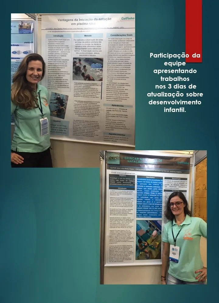 Presença da equipe Golfinho nos principais congressos da área, apresentando trabalhos científicos e ouvindo as experiências com demais profissionais do setor. Assim, garantimos atualização e fundamentação em nossas práticas de educação aquática..